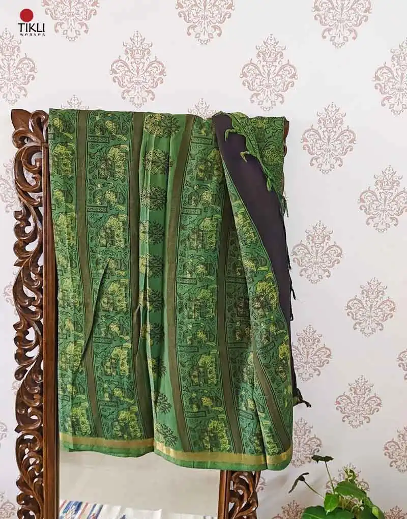 This Assam silk saree stands out for its luxurious fabric, glossy sheen, and long-lasting quality The fabric has a smooth, model silk or soft silk feel, adorned with exquisite Hand Block Prints. The Assam silk saree showcases stunning hand block prints featuring traditional bagru and vanaspati designs. Its attractive border and pallu make it ideal for various occasions such as weddings, parties, festivals, and evening wear.