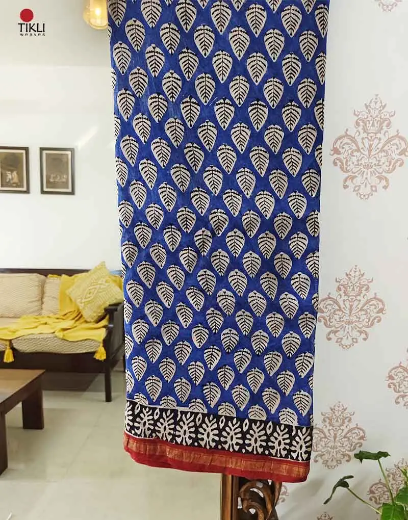 Blue Pine – Hand Block Print Chanderi Silk Saree