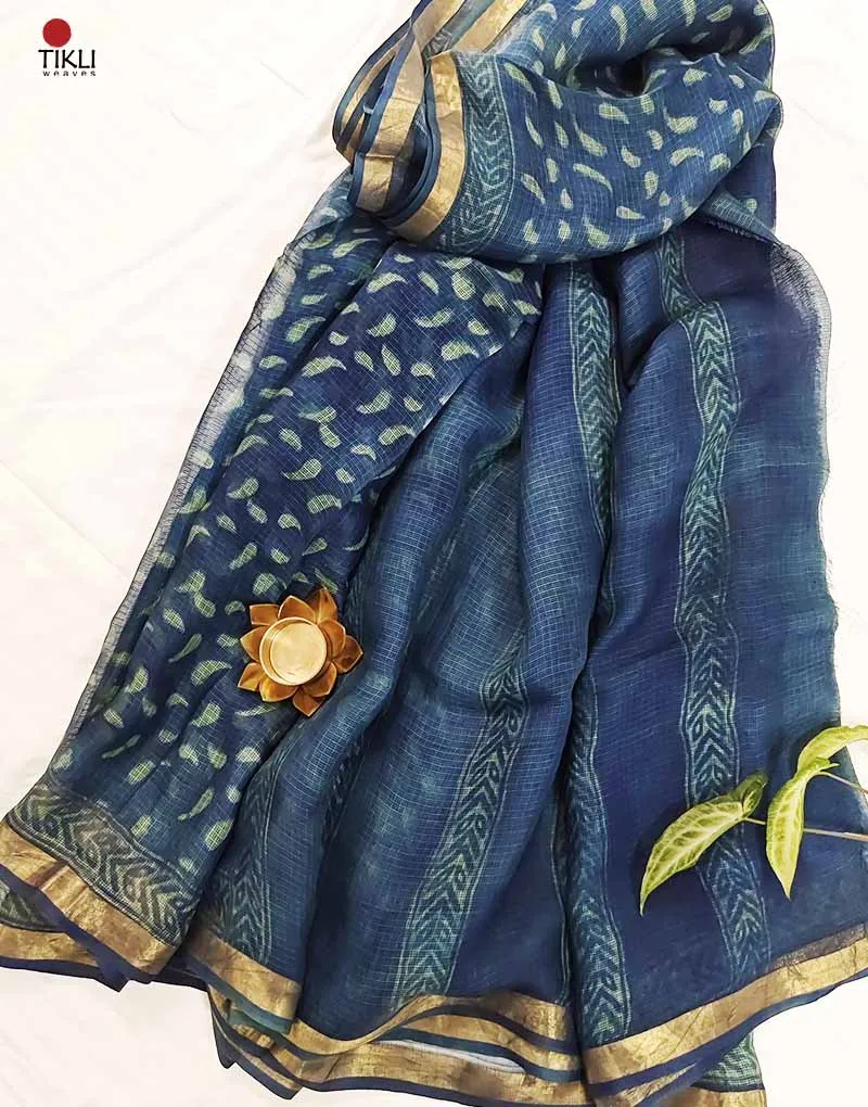 Rain Drop – Hand Block Print Kota Silk Doria Saree